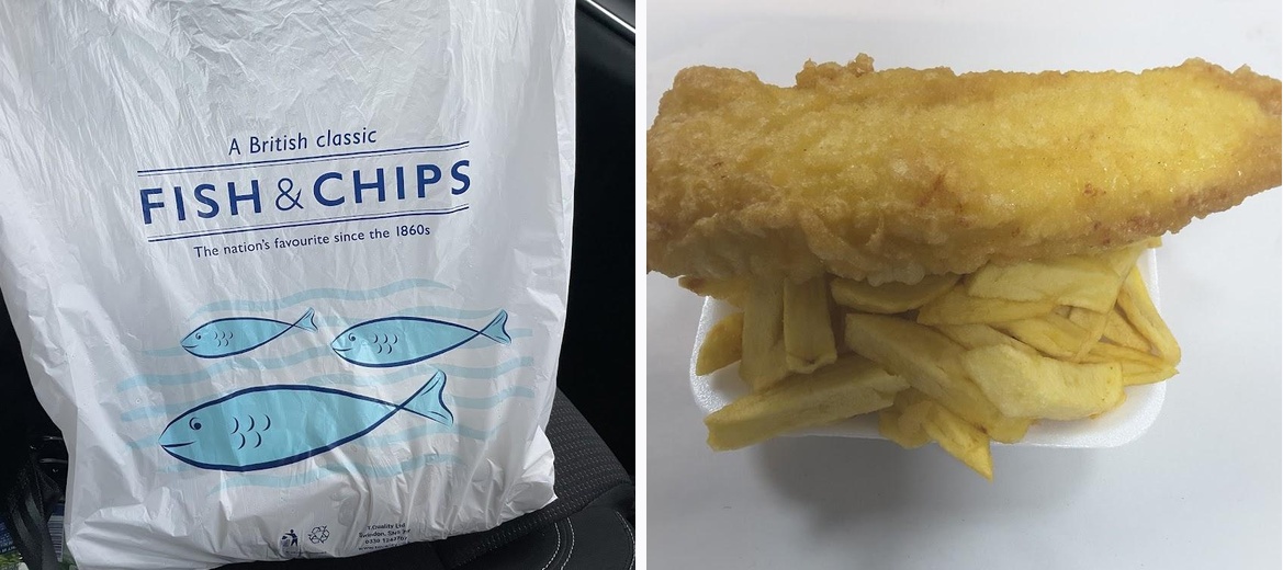 My cousin ordered a medium fish (cod) and chips to go. She asked for them to be wrapped separately. We had to wait - my cousin said everything was fried to order. When our food was being wrapped to go I noticed the huge amount of chips. Thankfully my cousin lives nearby and we were able the eat both. The fish fillets were huge, fried just right & had a good taste. The chips were good- just so many. The next time I'm in Bristol I'd order food from this shop.